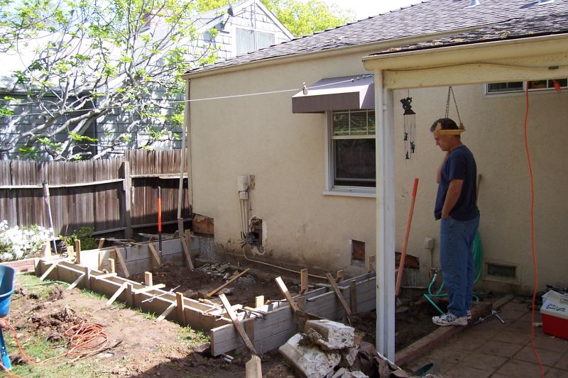 Another thoroughly frustrating week. The paint guy came out 3 or 4 times to fix little problems we spotted. We weren't able to use our new shower since some tiles had been removed to prepare for cutting out the wall to build the missing nook and there was tape covering the drain (which we took to mean "don't use this yet"). Sadly, for most of the week there was no ETA from the tile guy on when he'd be out to finish the job. We finally pushed it on Thursday and were told he wouldn't be out until AFTER our block party on July 3rd. I calmly explained that we would march the ENTIRE NEIGHBORHOOD in to see the hole in the wall if it wasn't finished. As if by magic, they were able to find a guy who would come out Saturday and Sunday morning to finish the shower. He did a great job. I finally got fed up with waiting for the dimmer switch to be installed in the new bathroom so I got one at Home Depot and put it in myself at 10:30 one evening. But wait, there's more... Ben called me to say he'd finally got the sprinklers all working. I decided I'd better check them out. First, I noticed right away that one valve was leaking. Then I turned them on and discovered that two of the valves had been hooked to the same sprinklers. Now, I'd have been more forgiving if it weren't the line right next to the valves; you turned on valve #1 and the head popped up next to my foot... I turned it off and turned on valve #4... AND THE HEAD POPPED UP NEXT TO MY FOOT. How can someone not notice that? Of course, that left one line without water; the line in the planter which had heads two feet away. Gosh, you'd think that as he was standing there testing the valves he would notice that they never did anything? We finally went BALLISTIC on Wednesday. I wasn't supposed to be home until after 9:00. But, traffic at the off-ramp I needed to take was busy so I was forced to take a different route. Since I was already going out of my way I figured I'd stop by the house and drop off some stuff. I arrived to find the front door wide open with a big FedEx box leaning against the unlocked screen door. Nobody was there. I called FedEx and found that the box had been left "without finding anyone to sign for it" at 3:00 that afternoon. I called Ben. Besides the initial problem, he mentioned that he had "stopped by" around 4:30 to check the progress on our patio and saw that the door was open but he figured that the strange car parked in front of our house must belong to my parents of "someone else we knew." He didn't even stick his head inside to check. Luckily, nothing is missing. But, considering the theft from week 15.... not a smart move at all. The old back porch was removed on Wednesday and the new, expanded, slab was poured on Thursday. One bright spot of this week came from the City. They declined two inspections which let us gain a couple of days on putting the three layers of stucco on the new exterior wall. |
