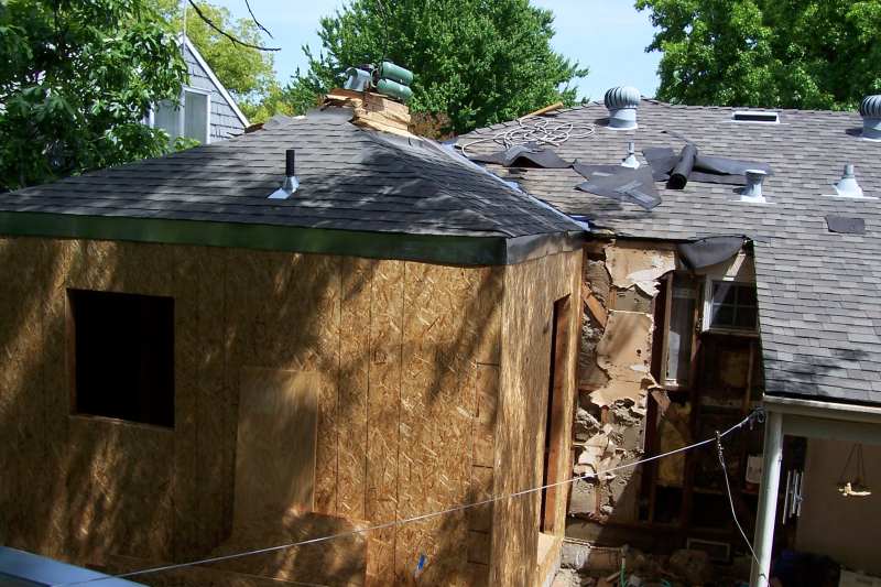 Just when we thought there were no more surprises left, the rains gave us a little Mother's Day shock. We discovered that a stream was running through our existing exterior wall, around the window, and down to the carpet. After frantic calls to our contractor, I headed up on the roof and moved the tar-paper around. That stopped the flow. Good thing that wall and the carpet are both scheduled for removal. Of course, the week wasn't over yet. We found out that the company making the bathroom window is moving their factory and our order will be delayed. Ben went to work trying to get the City to inspect construction without it. He also started shingling the roof but the one day he was able to work on that was our first (and only) hot day so he only got half done before the tiles got too hot to work with. But, of course, more rain is in the forecast. |